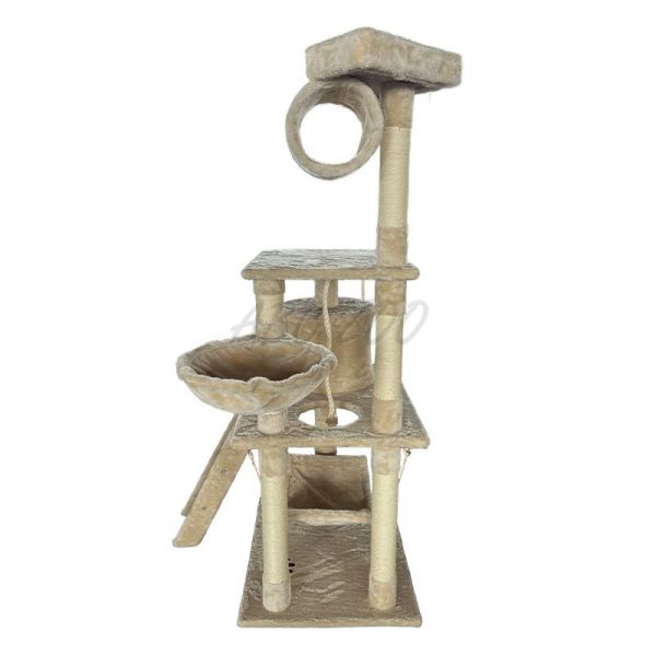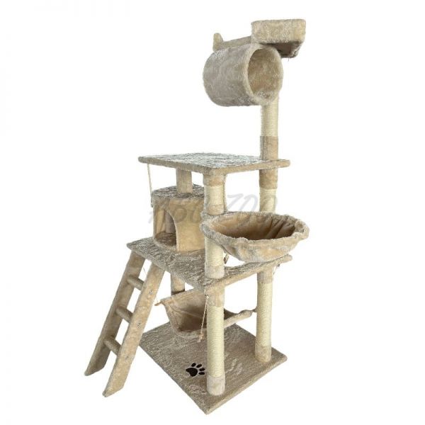 Acest zgârieț înalt și stabil este perfect pentru gospodăriile cu una sau mai multe pisici, care au nevoie de un spațiu pentru a-și petrece activ timpul și un refugiu liniștit. Oferă o combinație de diferite elemente, cum ar fi culcușuri, platforme de observație, tunel, leagăn și scară, oferind pisicii confort maxim și distracție. Stâlpii din sisal susțin instinctul natural al pisicilor de a zgâria, protejând astfel mobilierul dumneavoastră de deteriorare.