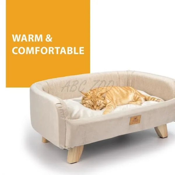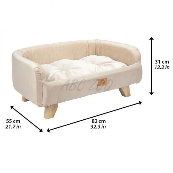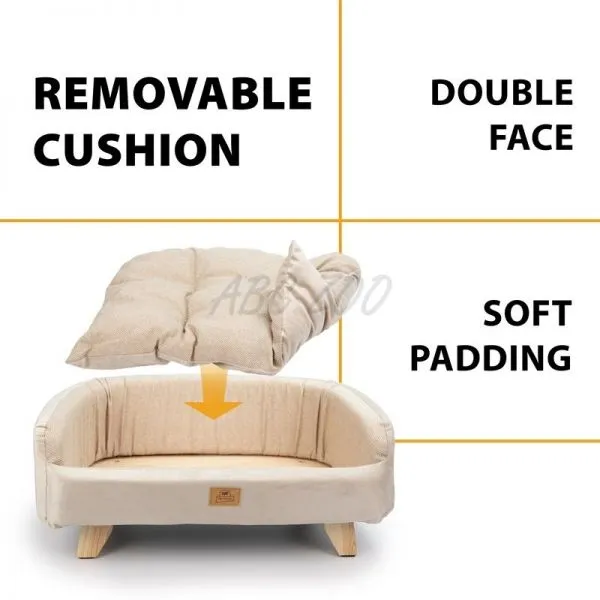 Culcușul are marginile căptușite și o pernă interioară reversibilă, detașabilă. Fața este mai joasă pentru ca prietenul tău blănos să intre și să iasă mai ușor, iar marginile sunt conturate și acoperite cu material moale pentru a oferi o îmbrățișare călduroasă animalului tău de companie. Picioarele din lemn anti-alunecare asigură stabilitate și izolație față de podea.