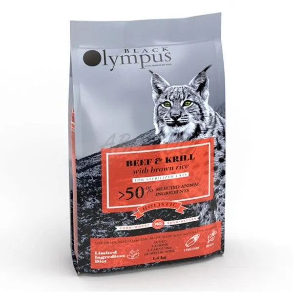 Black Olympus Cat Sterilized Beef & Krill 8 kg