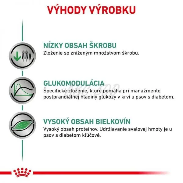 Conținut ridicat de proteine. Menținerea masei musculare este esențială pentru câinii cu diabet.