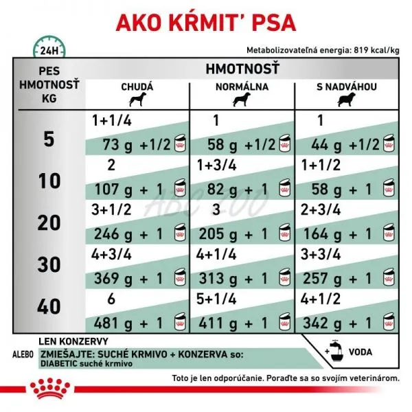 Prin comandarea de hrană veterinară uscată sau conserve, confirmați că câinele dumneavoastră a fost examinat de un medic veterinar, care pe baza diagnosticului stabilit a recomandat utilizarea hranei alese de dumneavoastră. Nu uitați să consultați medicul veterinar cel puțin o dată la 6 luni pentru a evalua starea câinelui și potrivirea hranei recomandate. Dacă în timpul utilizării hranei starea câinelui se modifică, cereți ajutorul medicului veterinar.