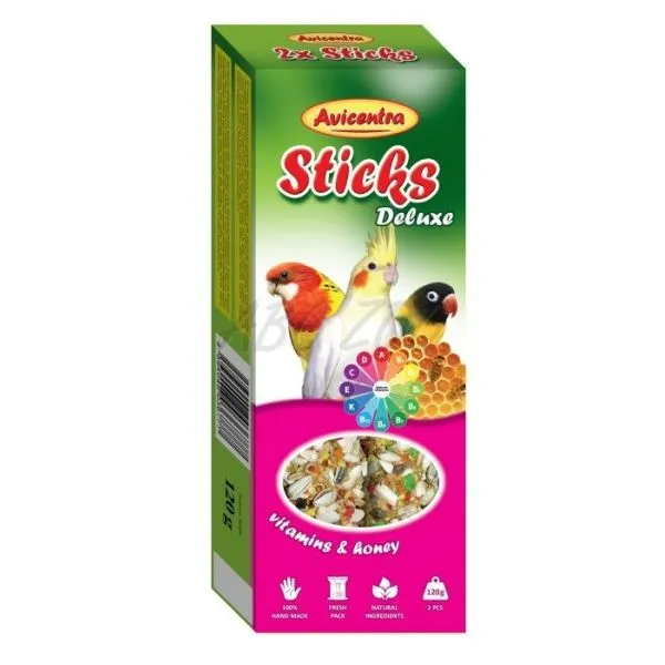 Avicentra Deluxe bețe pentru papagali mici - vitamine și miere, 2 buc
