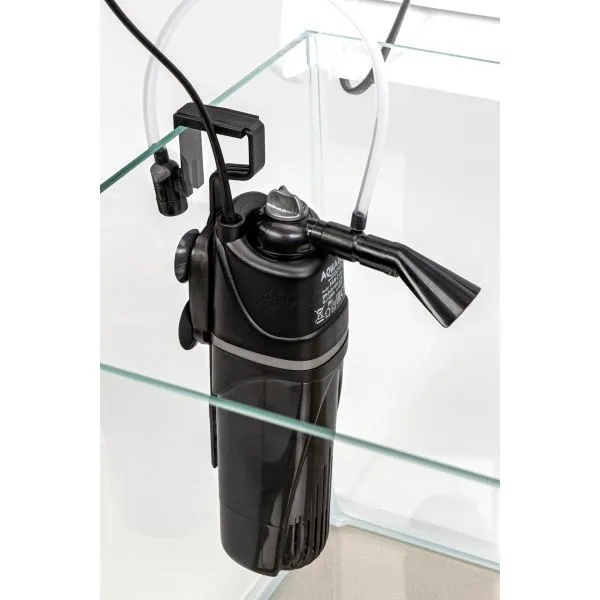 Filter FAN 1 Plus asigură condiții optime pentru locuitorii acvariului și este foarte ușor de utilizat. Carcasa din plastic cu perforații localizate reține resturile mai mari, iar construcția împiedică intrarea apei murdare în acvariu în timpul curățării. Reglajul debitului se face fără a vă scufunda mâinile în apă. În plus, filtrul are funcție de aerare și permite ajustarea unghiului de refulare a apei până la 75°.