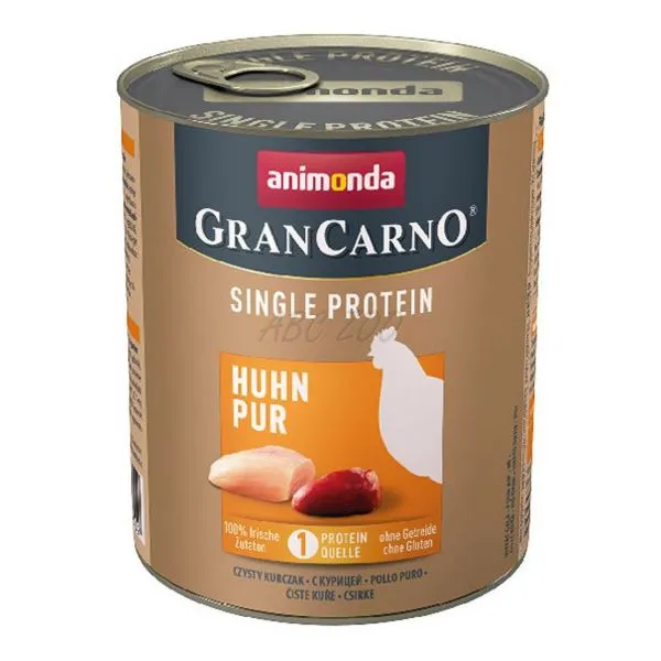 Animonda GranCarno Single Protein este o hrană la conservă, monoproteică cu pui, pentru câini adulți (1-6 ani) de toate rasele.