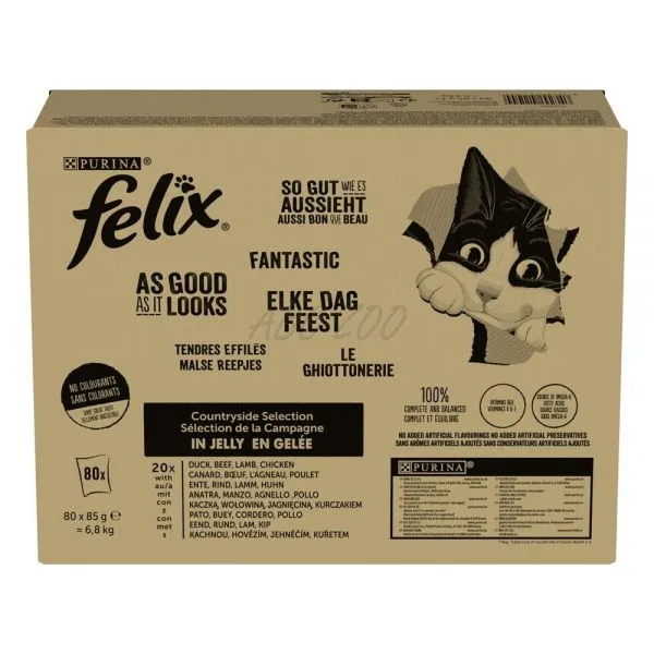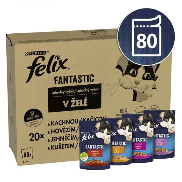 Kapsule FELIX Fantastic Multipack - cu vită, pui, rață și miel în jeleu 80 x 85 g