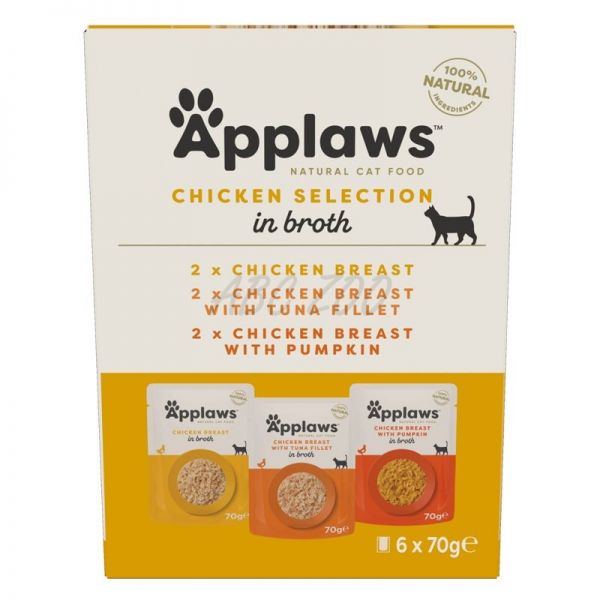 Applaws Chicken Selection Pliculețe pentru pisici, selecție de pui în zeamă 6 x 70 g