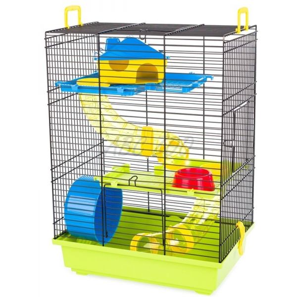 Colivie pentru hamsteri și alte rozătoare mici, cu tunel și accesorii. Culoarea tăviței este verde. Mai multe detalii