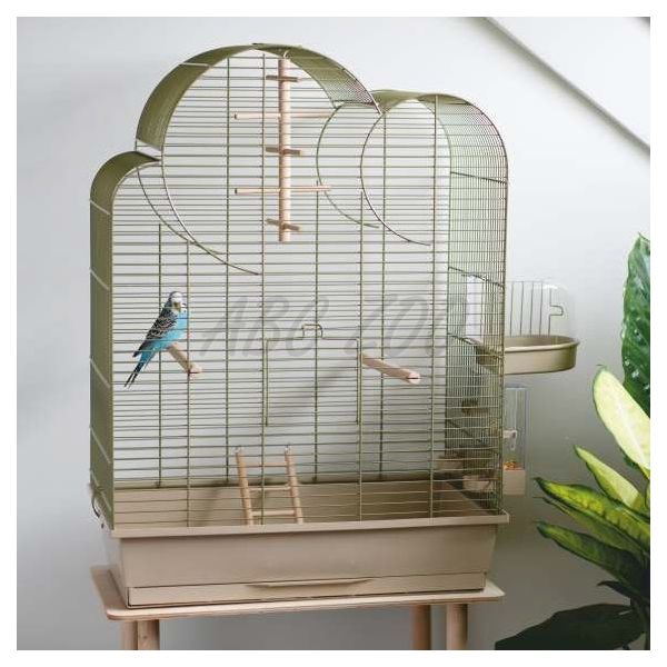 Colivie elegantă pentru papagali, complet echipată. Grilaj verde, tăviță bej. Mai multe detalii