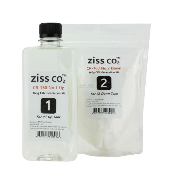 Ziss Aqua ZCR-160 este o reîncărcare CO₂ de înaltă calitate, destinată utilizării cu sistemul Generator CO₂ Ziss Aqua ZC-II. Conține două componente principale – partea lichidă (Nr.1) și substanța solidă (Nr.2), care împreună generează până la 160 g de CO₂ pur. Acest proces asigură un debit stabil și controlat de CO₂, ideal pentru susținerea creșterii plantelor acvariale și reglarea pH-ului.