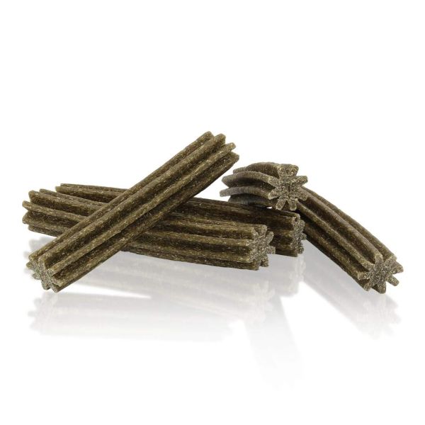 Gustări funcționale de mestecat, concepute pentru a susține sănătatea orală și a reduce formarea plăcii dentare. Combinația de mușețel și salvie ajută la igiena naturală a cavității bucale, în timp ce textura delicată sprijină curățarea dinților în timpul mestecării. Extrem de gustoase, potrivite și pentru câinii sensibili, fără coloranți artificiali sau zahăr adăugat.