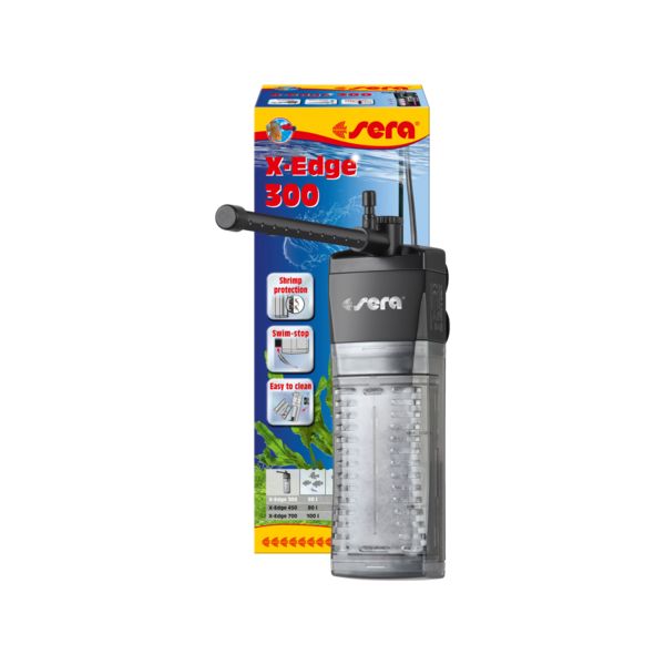 Conținutul pachetului: Filtru de colț sera X-Edge 300, vată filtrantă, spumă filtrantă, mediu biologic de filtrare sera siporax mini Professional, rampă de pulverizare, duză „cioc de rață”, Air-Set, suport cu ventuze.