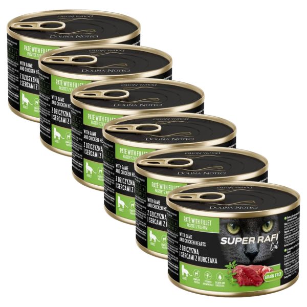 Super Rafi Cat Adult P&F Game and Chicken hearts 6 x 185 g