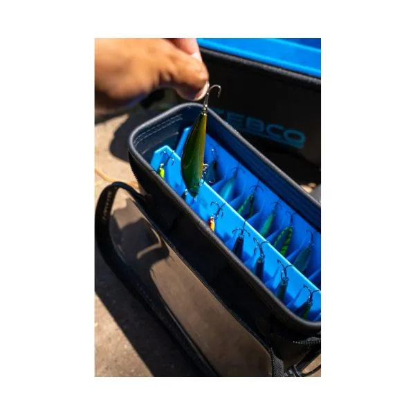 Această geantă portabilă din material EVA este concepută pentru a depozita momelile tari într-un mod inovator, care menține fiecare momeală separată și mereu la îndemână. Datorită faptului că toate momelile sunt suspendate în locul lor, cârligele triple nu se încurcă.