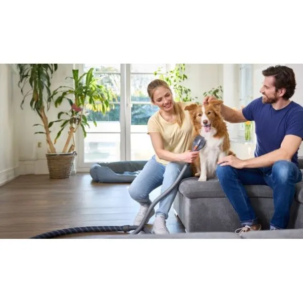 THOMAS Set de Îngrijire pentru Pisici și Câini este un set de îngrijire acasă pentru câini și pisici, care aspiră în același timp firele de păr eliberate în aspirator în timpul perierii – ideal mai ales în perioada de năpârlire.