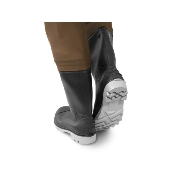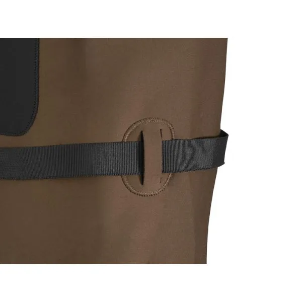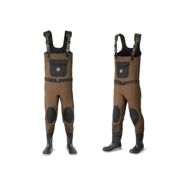 În timpul pescuitului de iarnă, este esențial să ne gândim la confortul termic. Acesta poate fi asigurat în mod ideal de salopetele din neopren Delphin ORAVA. Acestea se remarcă printr-o execuție de calitate și un design elegant. Fiecare cusătură și îmbinare supusă stresului sunt tratate cu precizie pentru a preveni scurgerile nedorite. Culoarea maro a neoprenului împiedică apariția unui număr mare de pete vizibile din mucus și alte impurități. Un ajutor indispensabil este buzunarul din neopren de pe partea din față a salopetelor, unde puteți depozita, de exemplu, permisul de pescuit. Nu trebuie să vă faceți griji nici în cazul în care trebuie să vă așezați pe pământ, deoarece în zona genunchilor salopetele sunt întărite cu un strat dublu de neopren. Bretelele ajustabile de pe umeri sunt, de asemenea, echipate cu o căptușeală din neopren, pentru a face purtarea salopetelor confortabilă pe parcursul întregii zile și pentru a reduce oboseala umerilor. Sub bretele se află, de asemenea, două inele din plastic, la care pot fi atașate diverse accesorii, cum ar fi un clește sau o ruletă, folosind un carabinier. Pachetul include și un brâu de pescuit, care împiedică pătrunderea apei în salopete în cazul unei alunecări sau căderi. Cizmele din cauciuc cu o talpă rezistentă și stabilă vă vor susține chiar și în condiții mai dificile. Interiorul acestora este căptușit cu o inserție din neopren, care protejează picioarele de frig.