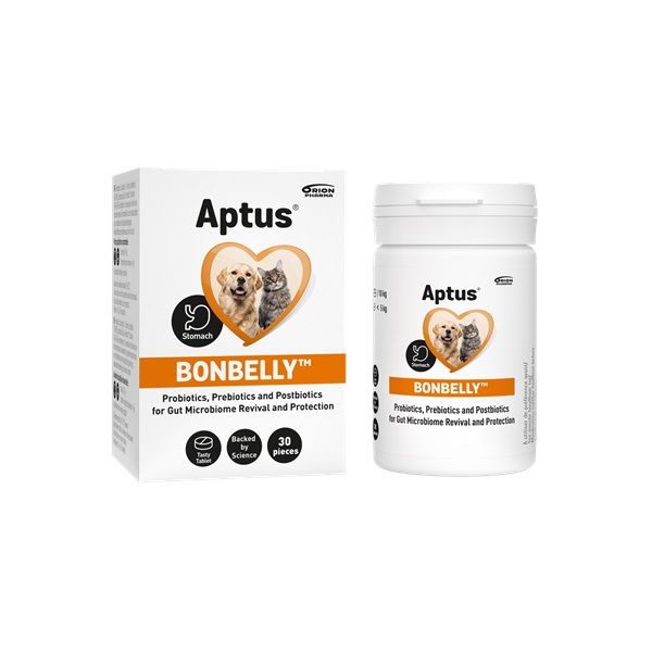 Aptus Bonbelly este o hrană complementară cu probiotice și prebiotice pentru susținerea florei intestinale sănătoase a câinilor și pisicilor.