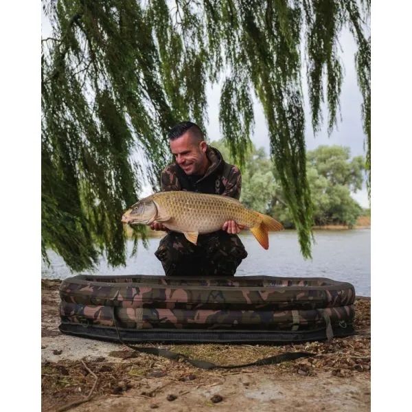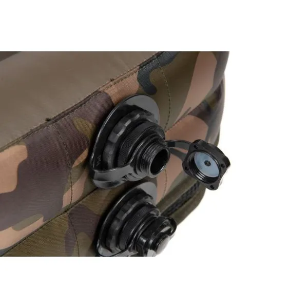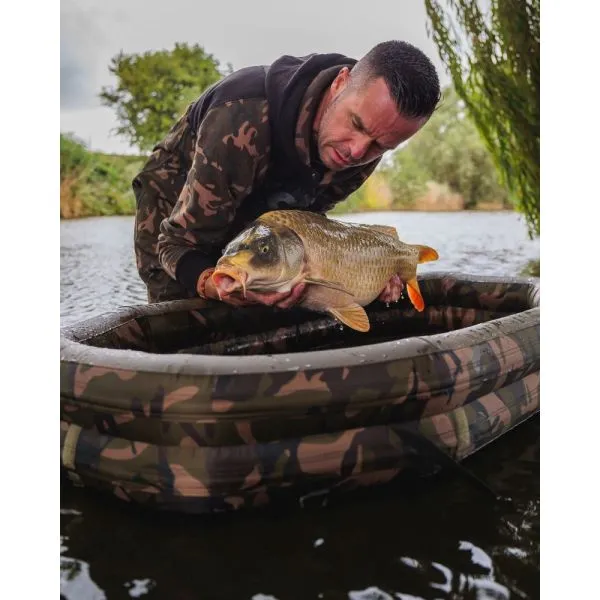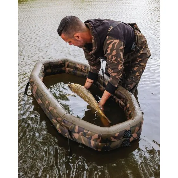 • Saltea gonflabilă ovală concepută pentru a oferi o protecție maximă peștilor, cu un material exterior din poliester Fox Camo 210D.