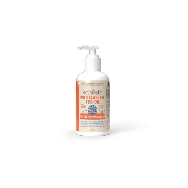 Schesir Grizzly Wild Alaskan Fish Oil este un ulei de pește natural, destinat tuturor raselor de câini și pisici, indiferent de dimensiunea acestora.