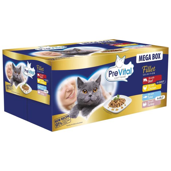 PreVital MEGA BOX Pachet cu carne de vită/pui/curcan/ton 40 x 85 g