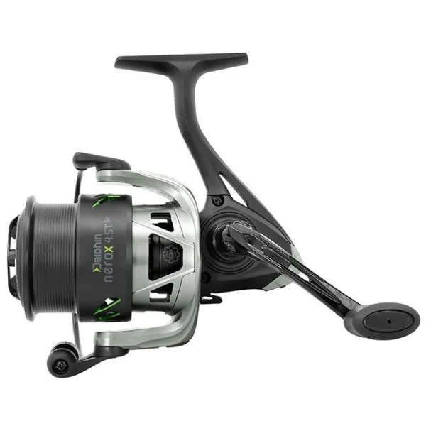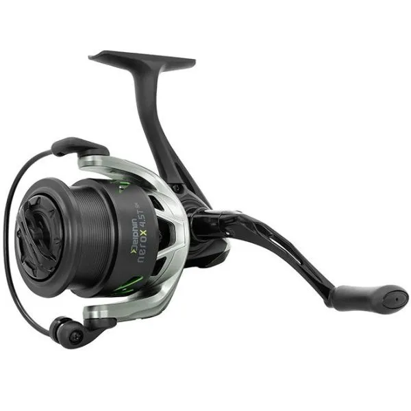 Mulineta atrage atenția prin designul său încă de la prima vedere. Corpul mat negru și tamburul, combinate cu elemente metalice gri tăiate eficient sub tambur și orificiile din tambur de culoare verde vibrantă, creează un aspect luxos, care completează perfect gama de produse pentru feeder REAXE. Mânerul lucios negru este dotat cu un grip din cauciuc perfect conturat, care se potrivește foarte bine în mână. Este ideal pentru feeder, pescuit cu pluta sau pentru pescuitul mai greu cu momeală.