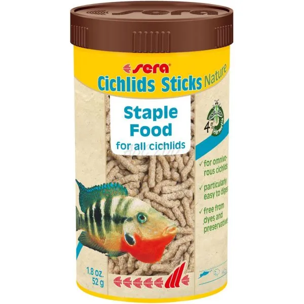 Sera Cichlids Sticks – hrană pentru pești fără coloranți artificiali pentru ciclide și alți pești mari de acvariu.