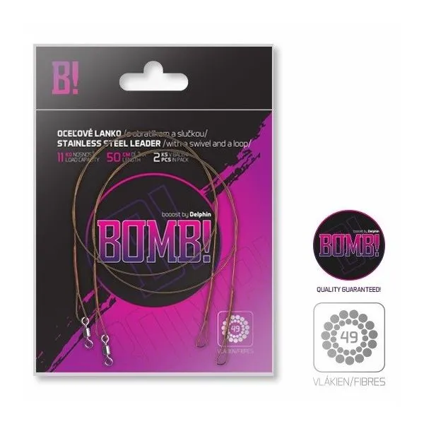 Pe o parte a firului BOMB! se află un swivel, iar pe cealaltă o buclă. Fiecare pachet conține până la 2 bucăți din acest fir rezistent!