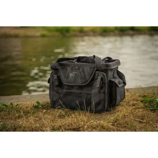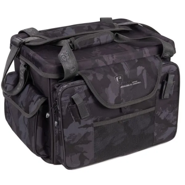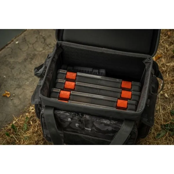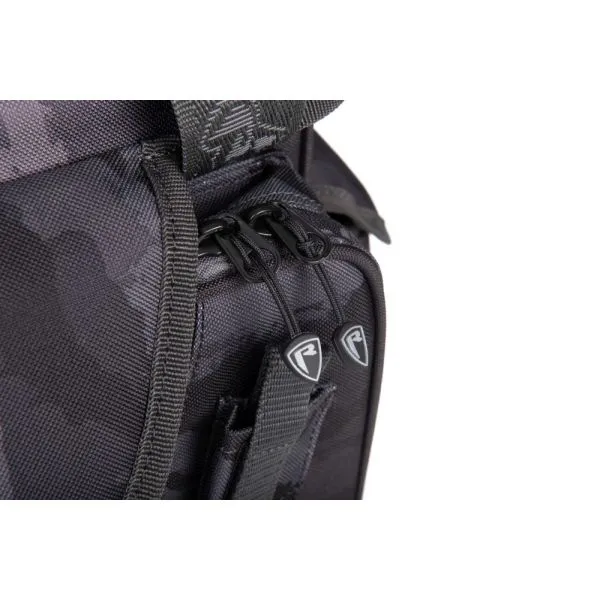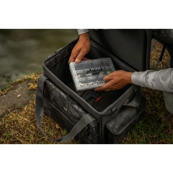 Este echipată cu un capac rigid (moulded), care poate servi și ca o suprafață de lucru stabilă pentru depozitarea momelilor sau a altor accesorii. Combinând designul iconic Fox Rage Camo, această geantă îmbină practicitatea cu stilul. Fermoarele robuste cu camuflaj, curea de umăr căptușită 3D și două suporturi Velcro pentru unelte fac din această geantă alegerea ideală, în special pentru pescuitul din barcă.