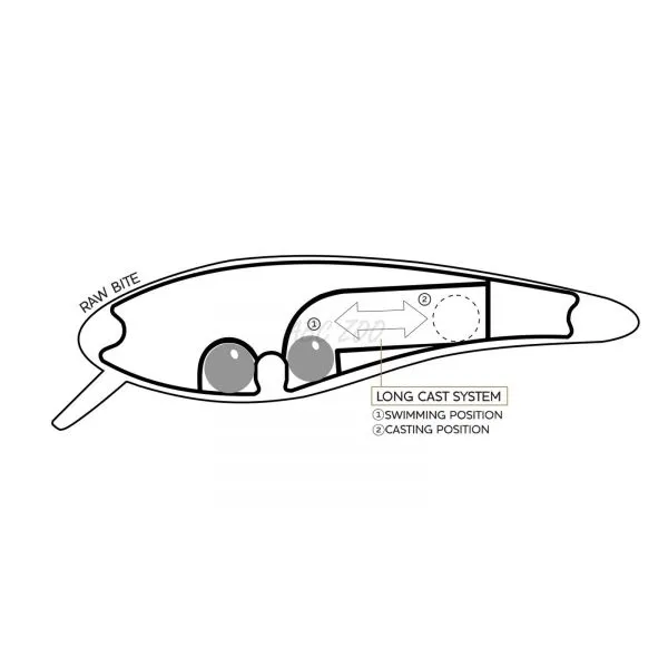 RawBite este echipat cu un sistem integrat de aruncare lungă, în care bila de oțel se mută în coadă la aruncare pentru o distanță mai mare, iar după începerea recuperării, revine în burtă, creând o mișcare de flotare irezistibilă.