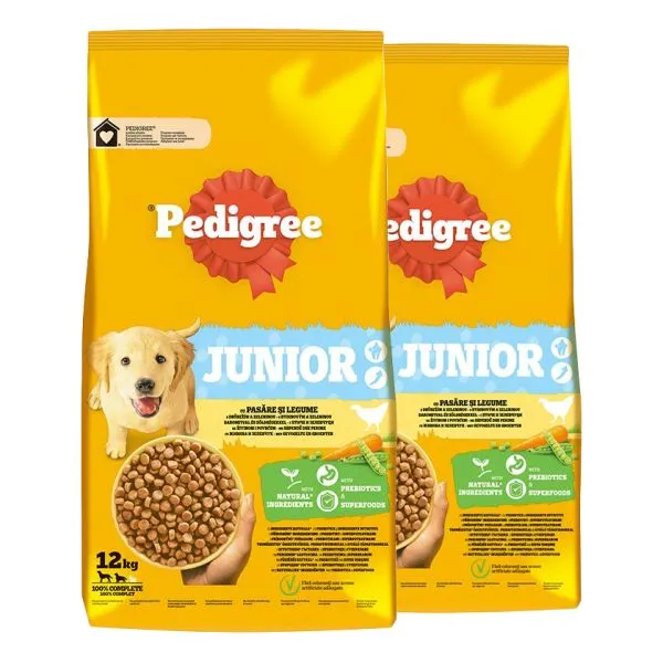 Pedigree Junior cu carne de pasăre și legume 2 x 12 kg
