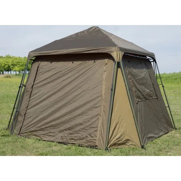 • Maximă variabilitate: Toate panourile sunt complet deschise, transformând bivacul într-un adăpost aerisit. Cu ajutorul stâlpilor incluși, puteți crea un acoperiș practic din panoul din față sau din spate.