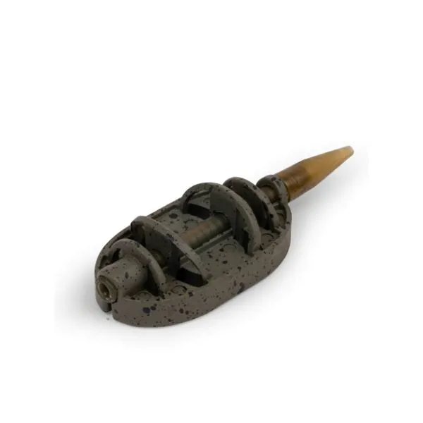 • Stabilitate și profil scăzut: Designul plat asigură că feederul se așază perfect pe fund, chiar și pe pante, iar profilul său scăzut este mai puțin deranjant pentru pești.
