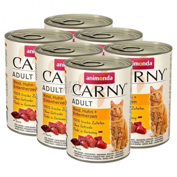 Conservă CARNY ADULT vită, carne de pui + inimi de rață - 6 x 400g