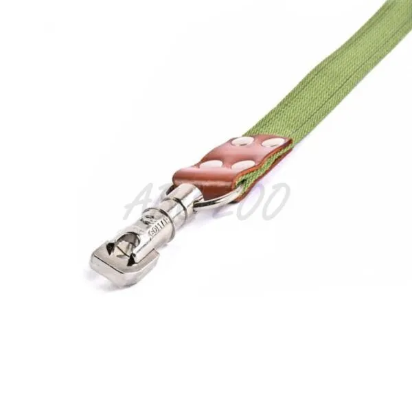 Lesă pentru câine din bumbac, un singur strat, cu elemente reflectorizante, de culoare verde.