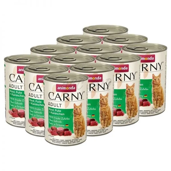 Conservă de carne ANIMONDA CARNY ADULT pentru pisicile adulte, cu carne de vită, curcan şi iepure.