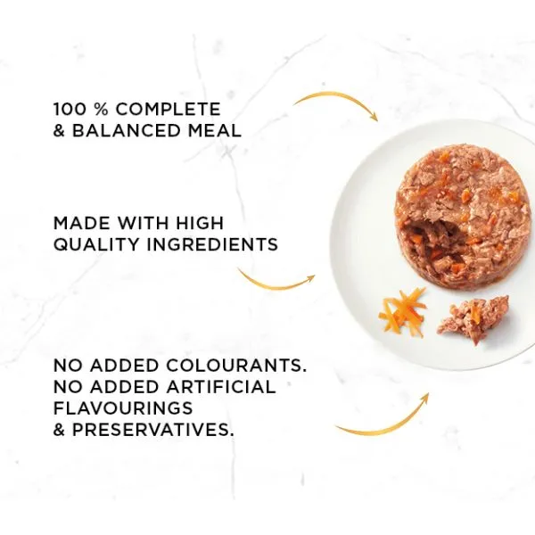 Ingrediente: carne și subproduse din carne (incluzând 4% carne pui), proteine vegetale concentrate, legume (7% morcov deshidratat), pește și subproduse din pește, zaharuri, minerale
