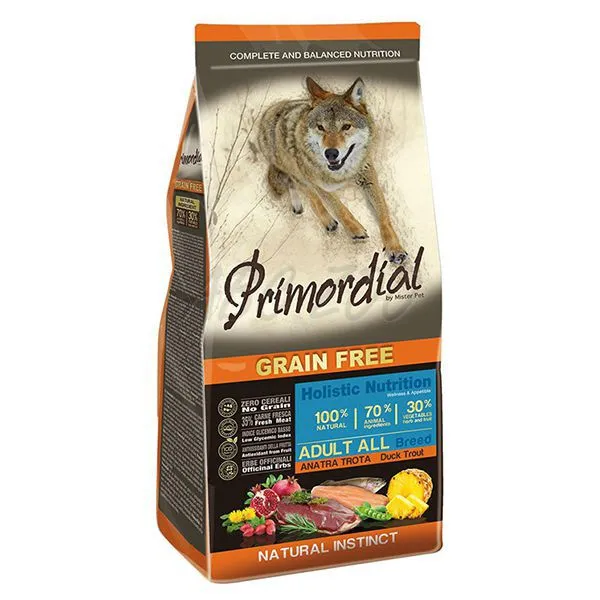 Hrană completă fără cereale pentru câinii adulţi indiferent de rasă, cu carne de raţă şi de păstrăv.   Mai multe detalii