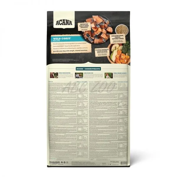 ACANA Wild Coast o hrană valoroasă și echilibrată biologic ce conține carne de pește (hering, halibut, merluciu - zărgan).