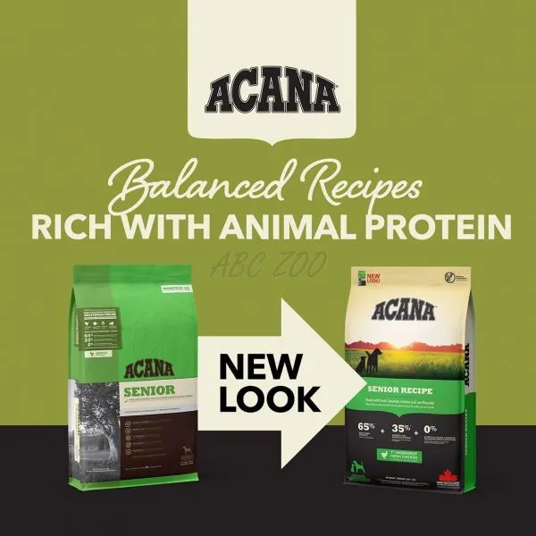 Acana Dog Senior este o hrană completă pentru câini adulți cu vârsta peste 7 ani. Hrana conține o cantitate mare de proteine pentru a susține masa musculară și o cantitate mică de zaharide pentru a preveni obezitatea și diabetul.