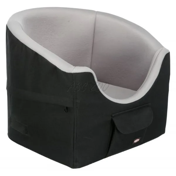 Scaun mașină de siguranță pentru câini de talie mică, negru - gri cu dimensiunile 45 x 39 x 42 cm.