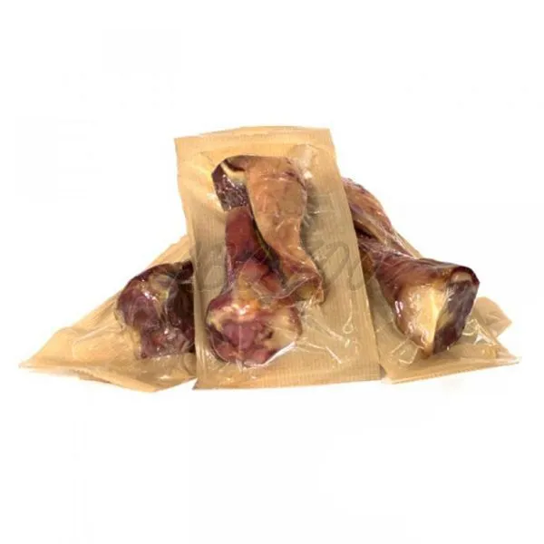 Hrană recompensă perfectă pentru câinii pretentioşi, sub formă de două semi-oase, acoperite cu şunca spaniolă Serrano cu un conținut bogat de proteine.