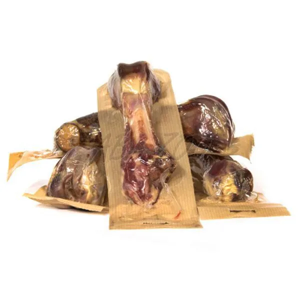 Hrană recompensă perfectă pentru câinii pretentioşi, sub formă de 2 semi-oase, acoperite cu şunca spaniolă Serrano, cu un conținut bogat de proteine.