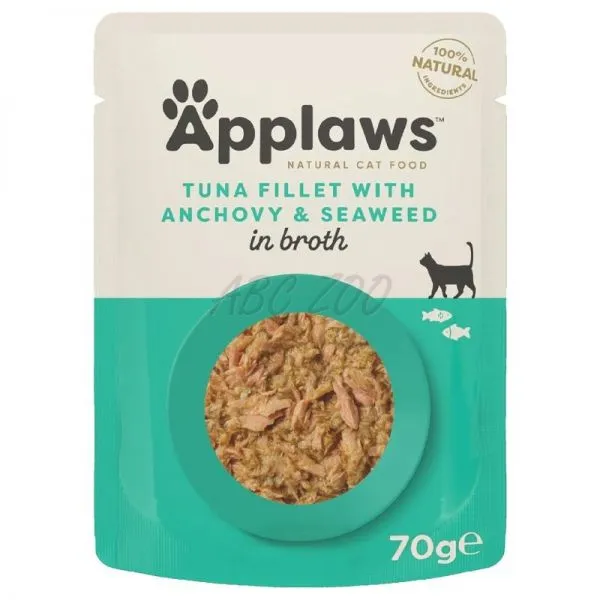 Applaws File de Ton cu Anchois și Alge Marine este o hrană premium naturală în pachet pentru pisici, fabricată din ton de înaltă calitate cu anșoa și alge marine într-un delicios sos.