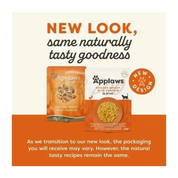 Applaws Piept de pui cu Dovleac este o hrană premium naturală în pachet pentru pisici, fabricată din carne de pui de înaltă calitate și dovleac într-un delicios sos.