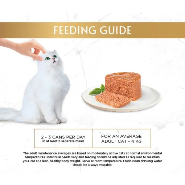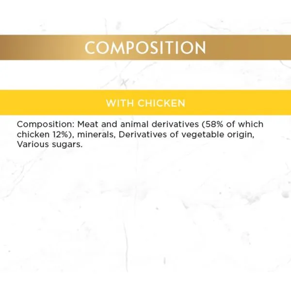 Chiar și cele mai pretențioase pisici vor aprecia acest pateu cu carne de pui. Este potrivit pentru pisici adulte de orice talie  6 x 85g.   Ingrediente: carne și subproduse din carne (din care 4% carne de pui), subproduse de origine vegetală, minerale, zaharuriAnaliza componentelor: umiditate 77%, proteine 11%, grăsimi 7%, cenușă 3%, fibre 0.1%