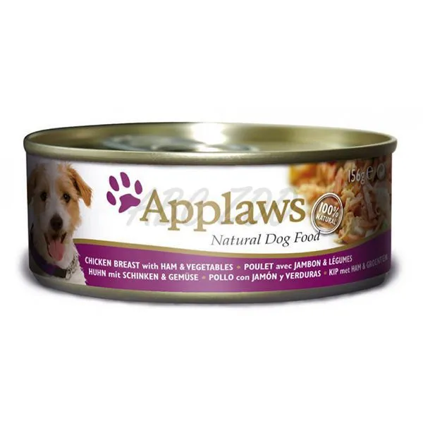 Consevă pentru câini APPLAWS dog cu pui, şuncă şi legume 156g