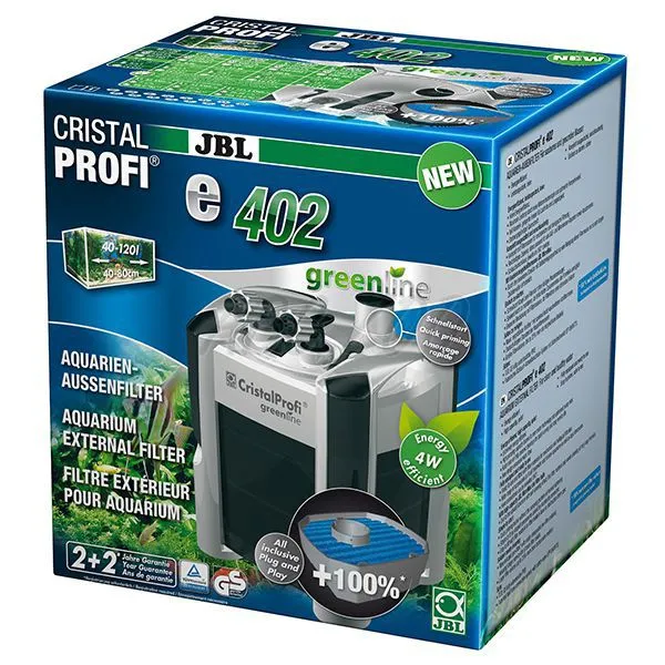 JBL CristalProfi e402 greenline filtru extern pentru acvariu de 40-120 litri, echipat complet pentru filtrarea mecanică și biologică a apei din acvariu