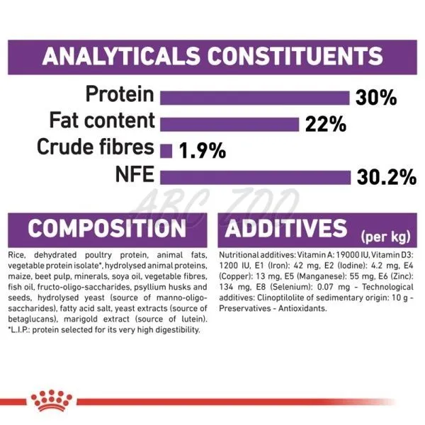 Hrana este indicată pentru cățeii sensibili pentru a-i ajuta pe perioada înțărcării până la 2 luni în cazul indigestiei sau nevoii de mai multă energie.Hrana este potrivită pentru cățelele aflate la sfârșitul sarcinii până la sfârșitul perioadei de îngrijire medicală.Ingredientele sale specifice și complexul de antioxidanți ajută la consolidarea sistemului imunitar natural.