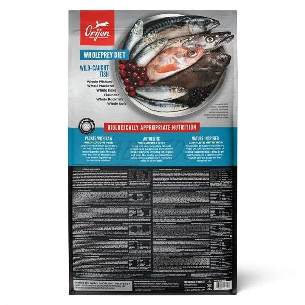 Hrană adecvată biologic, fabricată din ingrediente locale proaspete, conține șase specii de pești canadieni prinși în sălbăticie. Hrana Orijen  este tipică, cu proporție de 38% de proteine biologic indicate, prin urmare, hrănește toți câinii în funcție de nevoile lor evolutive și biologice.