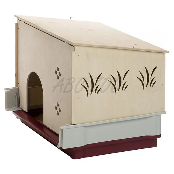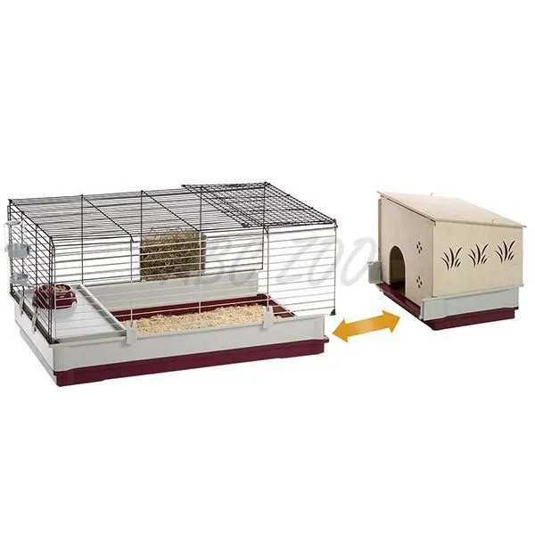 Cușca oferă spațiu suficient datorită modulului separat cu o lungime de 40cm care extinde spațiul și poate fi folosit ca zonă de cuibărit. Căsuța din lemn atașabilă la cușcă poate fi utilizată ca zonă de odihnă. Întreținerea casei este ușoară datorită acoperișului demontabil care este prevăzut cu un cârlig metalic pentru închidere.