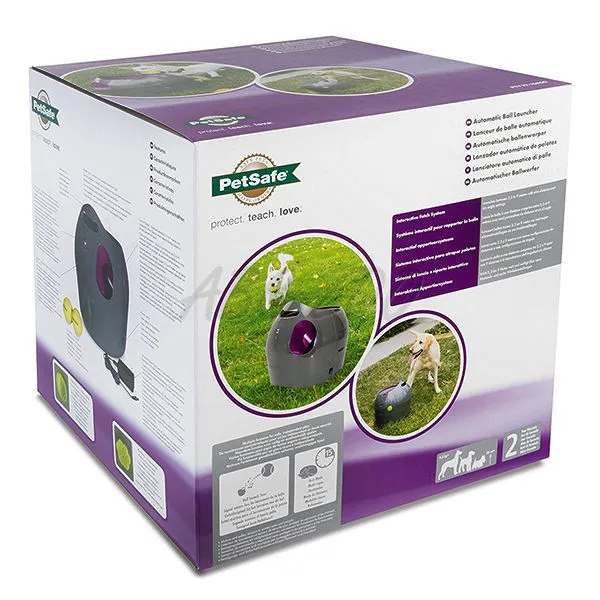 Aparat de lansare cu bile impermeabil pentru utilizare externă și internă. Este posibil să setați 9 setări de distanță diferite (de la 2,5 m până la 9 m) în 6 unghiuri diferite (întotdeauna în unghi de 45 °). Lansatorul automat este potrivit pentru orice câine care se poate juca cu o minge de tenis și ajunge la gaura de aruncare care este plasată la 28 cm deasupra solului.